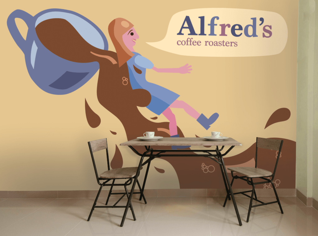 Alfred’s Coffee Roasters is a a local coffee chain with old-timey flair. I used a dusty color pallet and an antique aesthetic to construct this brand identity. Using warm contrasting colors, I crafted an exquisite mood. Swirly and floral motifs on the menu remind one of vintage wallpaper. The coffee mug illustration adds playfulness and engagement to the visual theme.