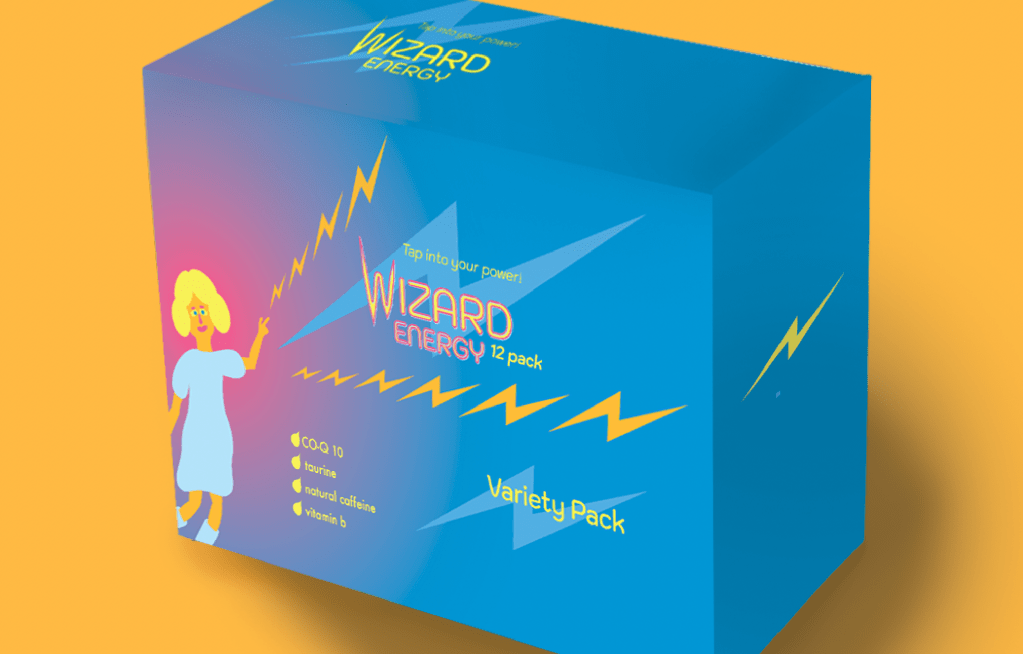 A truly energizing visual theme was needed for this energy drink brand. I used an electric color pallet and sharp imagery to create this identity. I used attributes of power, electricity and magic. This visual identity is sure to catch the eyes of any consumer looking for their daily pick-me-up.